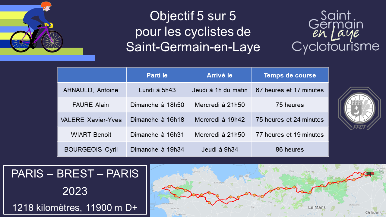 C’est un record dans l’histoire du club. Cinq valeureux cyclistes de notre club cycliste de Saint-Germain-en-Laye ont réussi l’exploit de parcourir la légendaire course #ParisBrestParis en 2023, donc sur l’année célébrant les 40 ans du club!