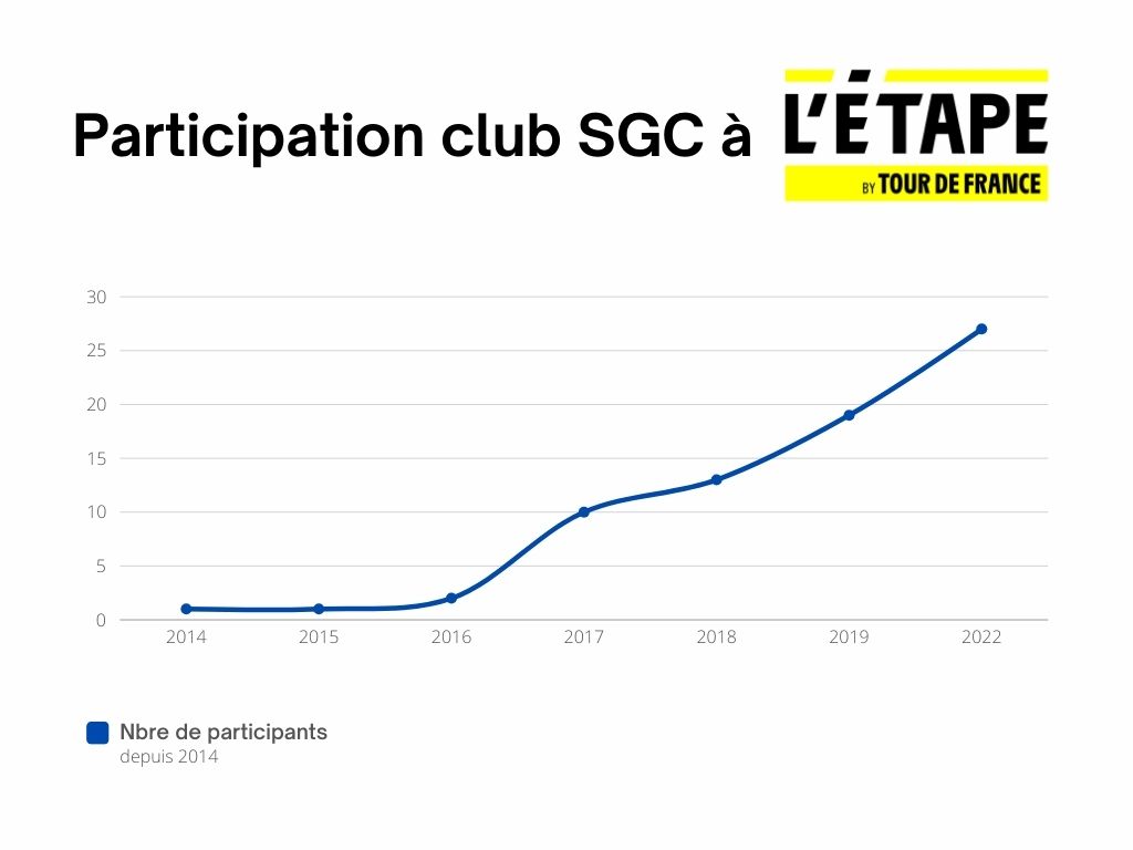 Nous battons régulièrement nos propres records de participation aux divers événements cyclistes, comme l’Ardéchoise ou l’Étape du Tour.